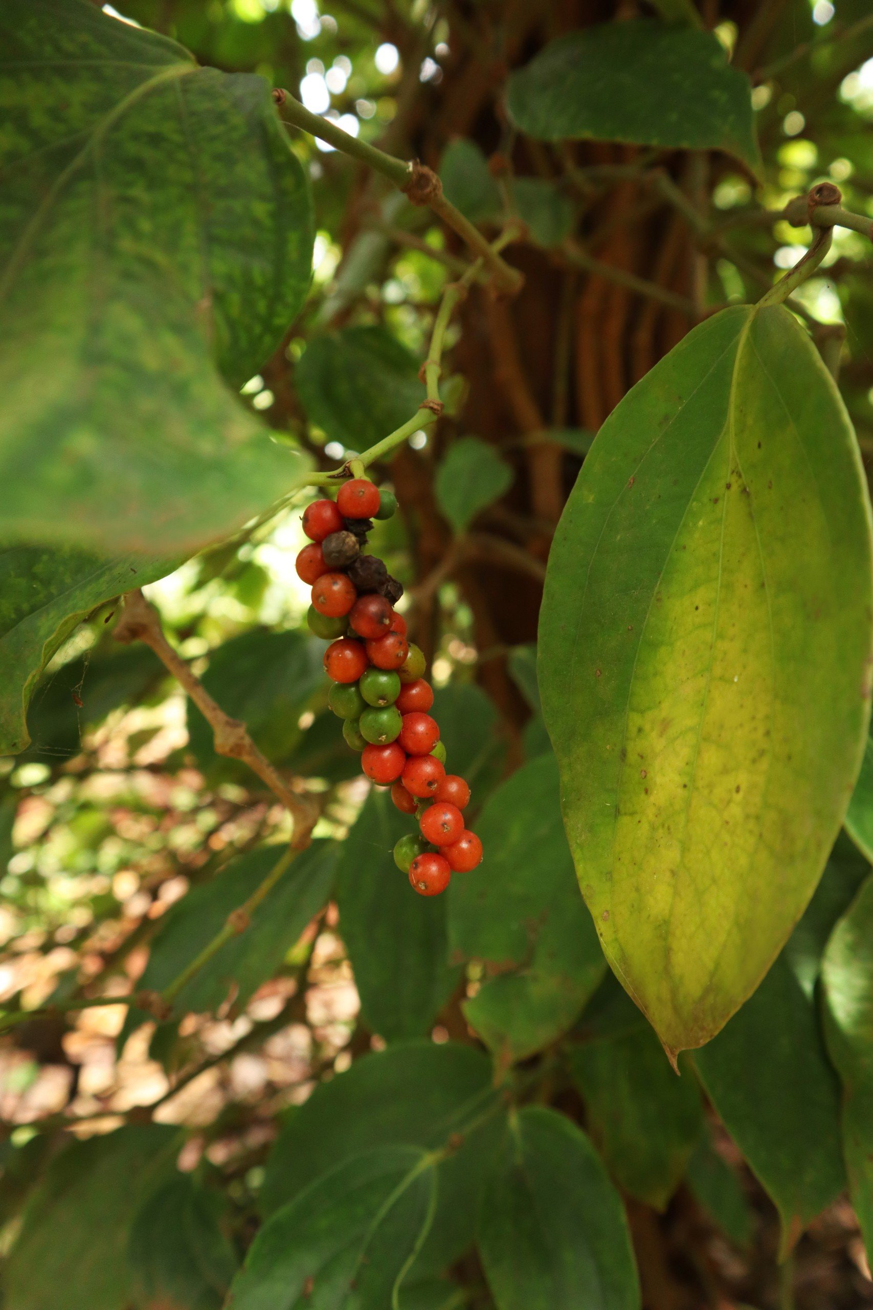Những hạt tiêu được thu hái với độ chín già chắc chắn, phơi khô trong nắng già cứng hạt, lọc qua nhiều bớt để loại bỏ tạp chất, (bị vướng vào trong lúc phơi), rửa sạch rồi phơi lại lần nữa trước khi đến tay người tiêu dùng.